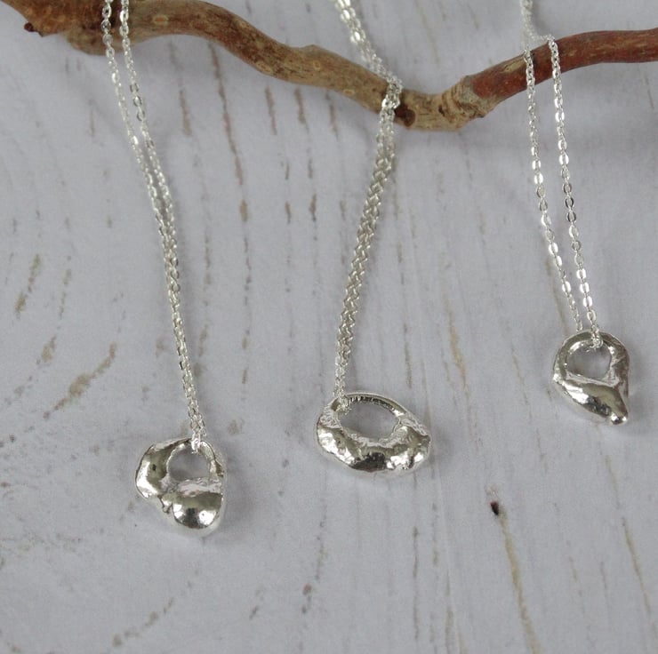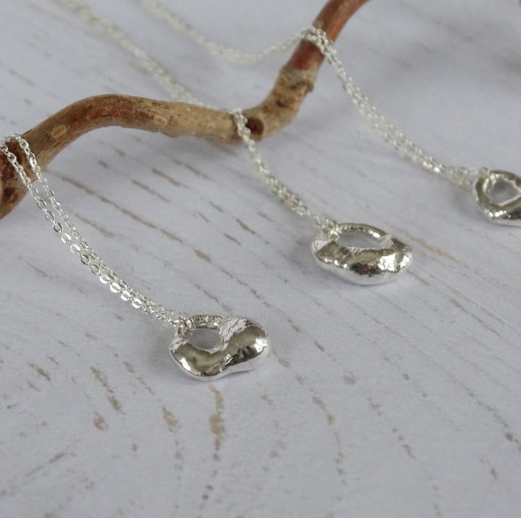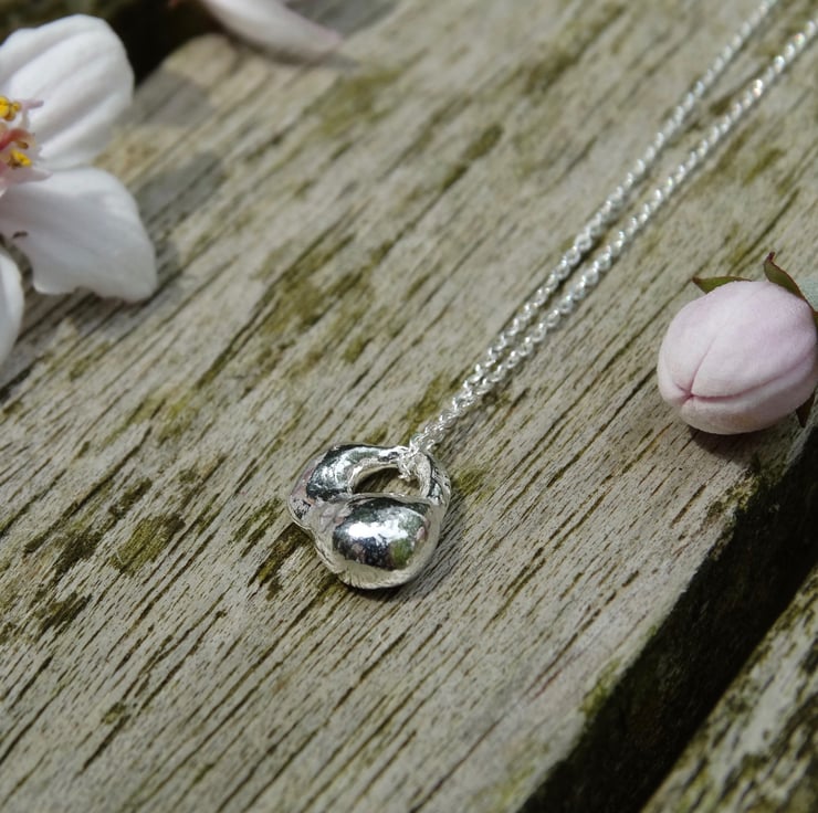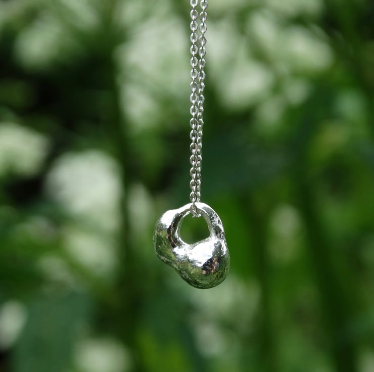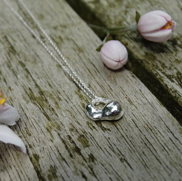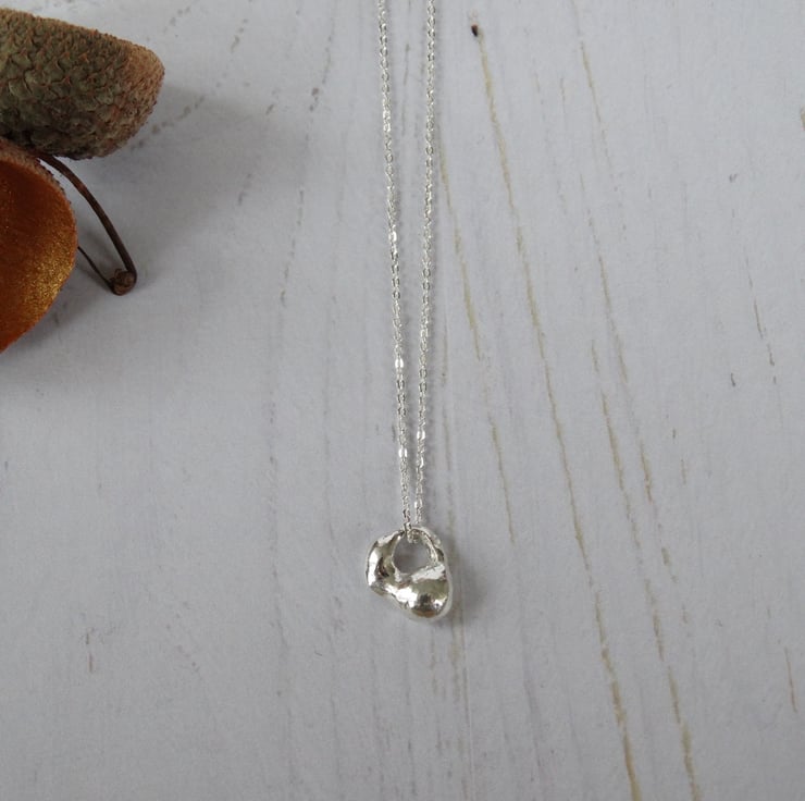 This tiny charm has been formed from off-cuts of recycled silver - nothing in my workshop goes to waste! The silver is heated until it starts to take shape. Each pendant comes out differently, so no two are ever the same (you will receive the one pictured).