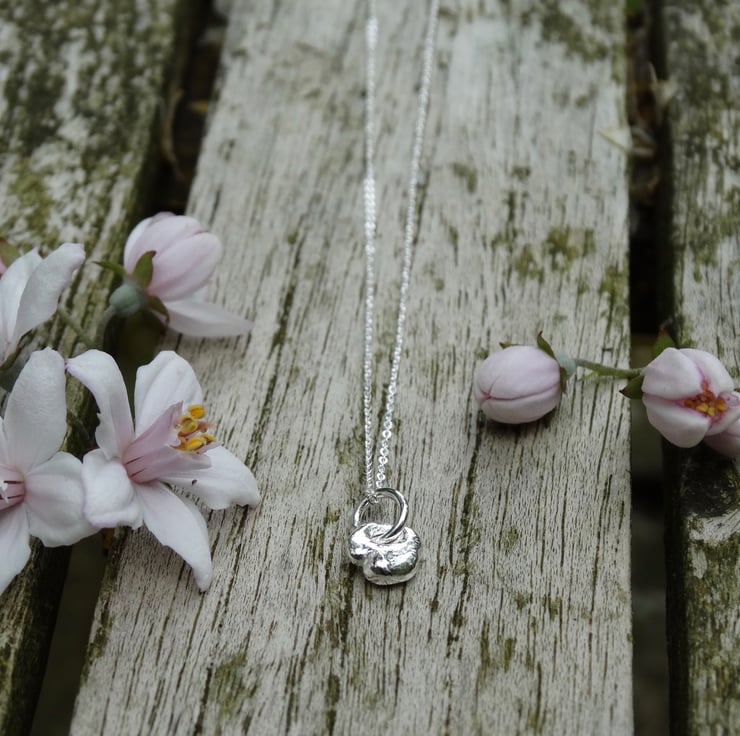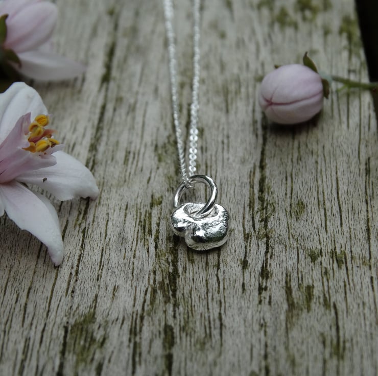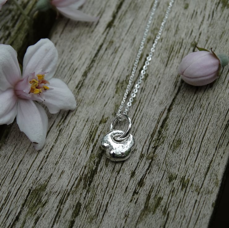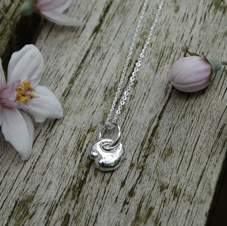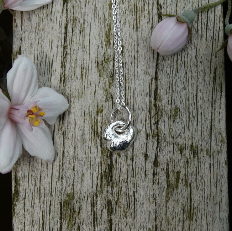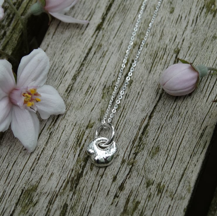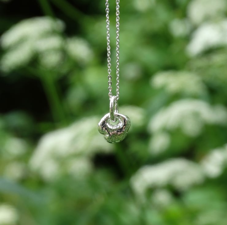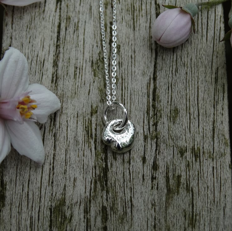 This super tiny charm has been formed from off-cuts of Eco Silver - nothing in my workshop goes to waste! The silver is heated until it starts to take shape. Each pendant comes out differently, so no two are ever the same (you will receive the one pictured).