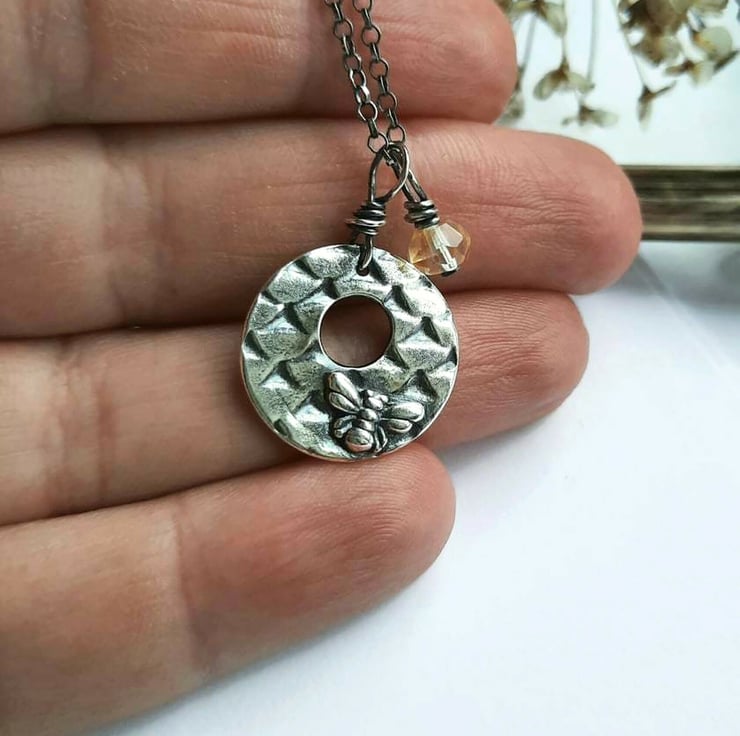 The little bee pendant is handmade by me from eco-friendly precious metal silver clay.