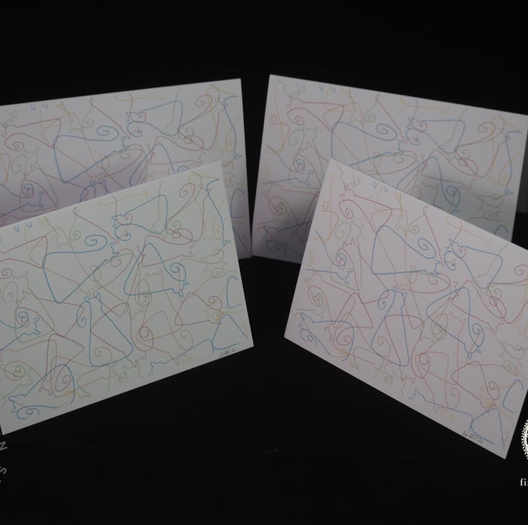 These hand drawn cats tumble across the front of this blank card. Great card for any occasion and in a useful pack of four.
