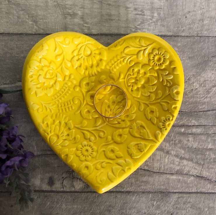 Here we have one of my handcrafted heart shaped dishes. These can be used for trinkets, rings, jewellery or soap. You could also put your keys or loose change on it. It would make a lovely gift or house warming present. It can also be used as a wedding favour or Wedding gift.