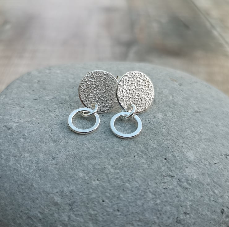 Recycled Sterling Silver Textured Disc Stud Earrings with Hoops.