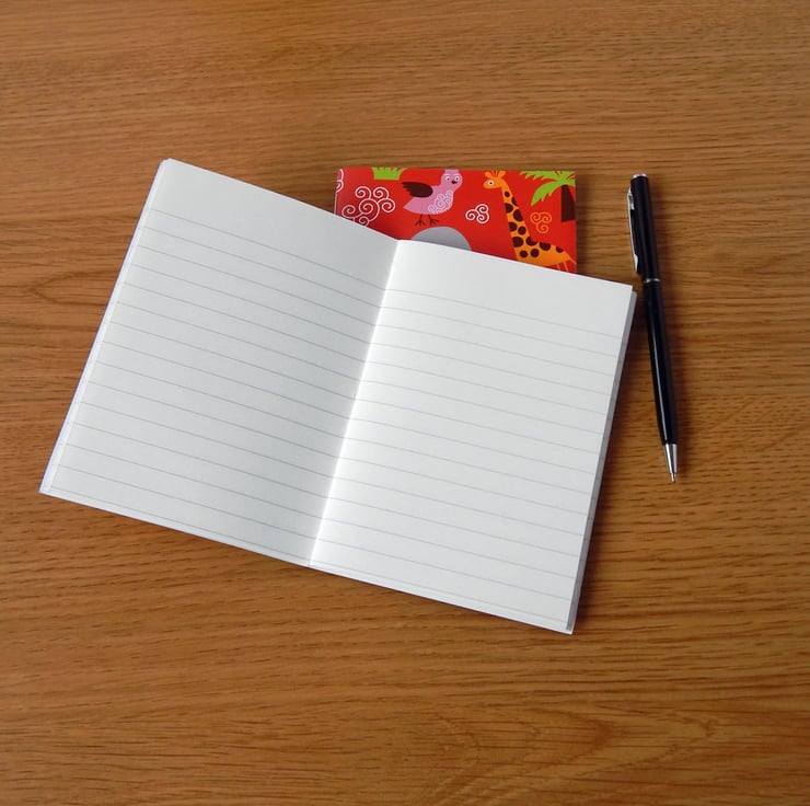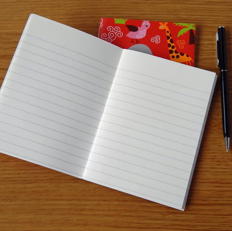 A fun little A6 (6" x 4") notebook, with animals all over the covers and lined pages. A cute gift for a child, or someone who loves animals.