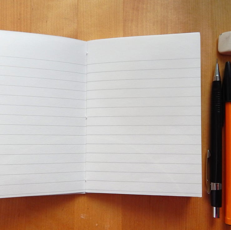 Inside are 24 pages (48 sides) of white paper. The paper has lines printed in grey ink.