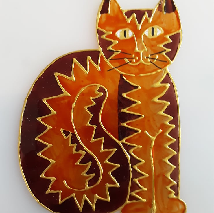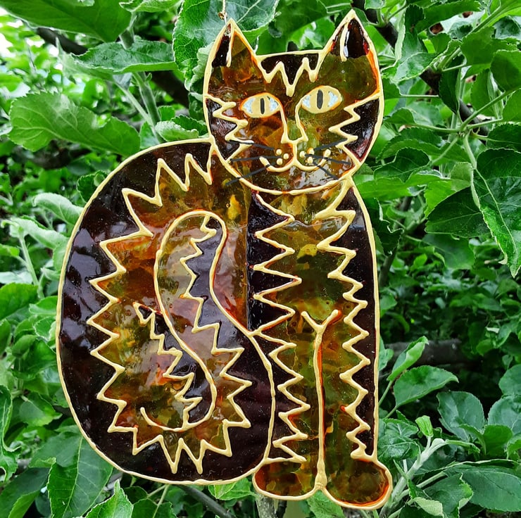This is a handmade handpainted ginger cat suncatcher