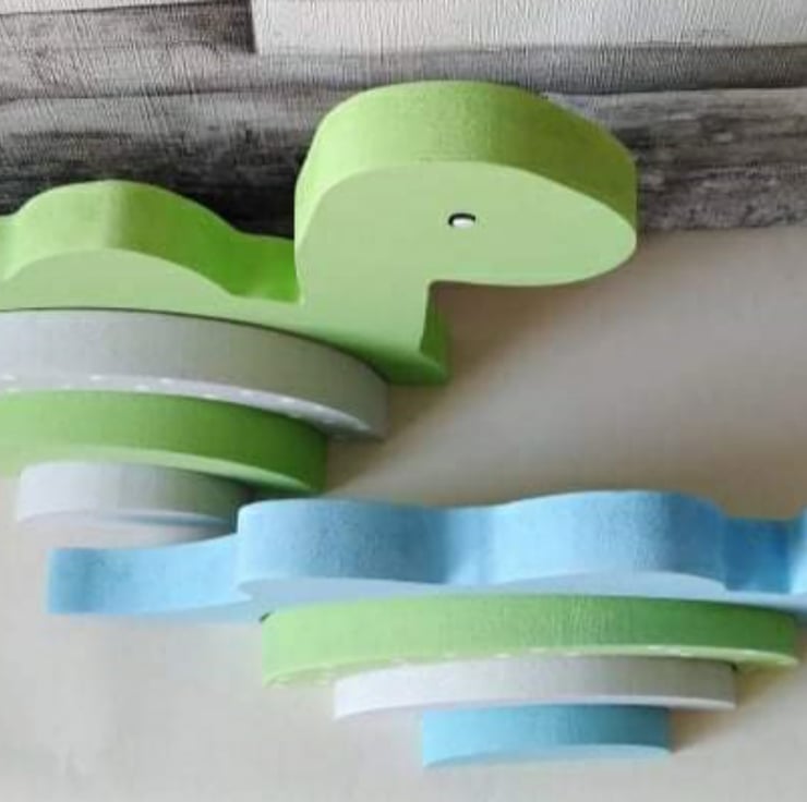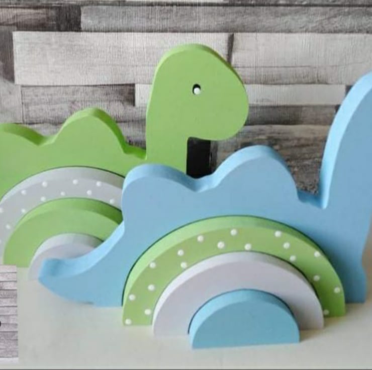 Each dinosaur measures 27 cm by 17.5 cm and is made from 18mm mdf.