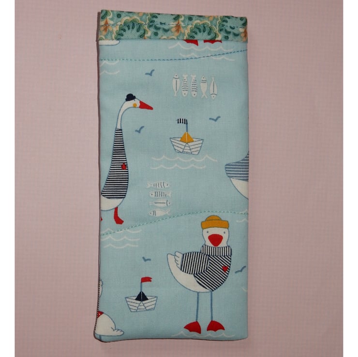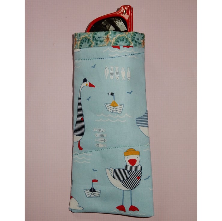 Cute seagulls, boats and a lighthouse feature on this handy case for your glasses or sunglasses. It is made from a cotton print fabric with a toning print lining. It also has a layer of wadding for protection. This is a slip in style glasses case, if you require a case which fastens please view my other listings.