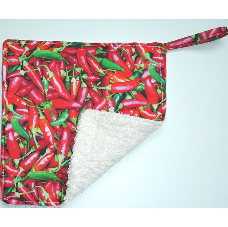 A Pot Holder backed with a cream towel fabric - useful for mopping up around the kitchen,