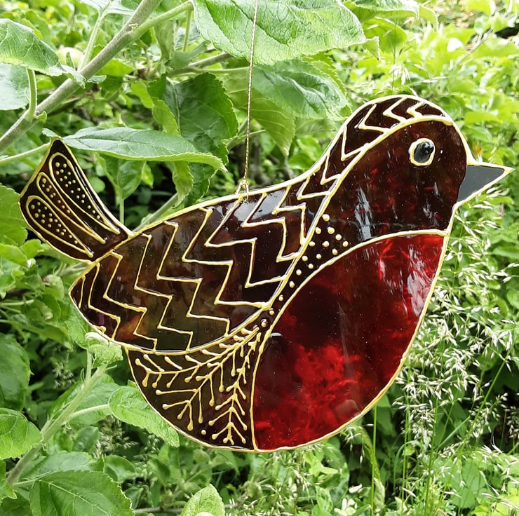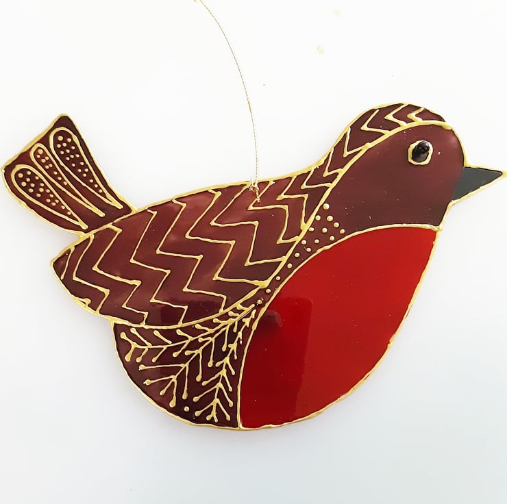 This is a handmade, handpainted robin suncatcher