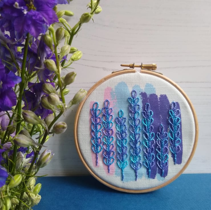 My original delphiniums embroidery kits are inspired by the beautiful confetti fields in Wick, near Pershore in Worcestershire. The delphiniums in these fields are harvested to make real flower petal confetti and for one week in June/July you can visit them. They are a spectacular sight!
