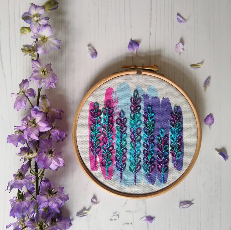 My original delphiniums embroidery kits are inspired by the beautiful confetti fields in Wick, near Pershore in Worcestershire. The delphiniums in these fields are harvested to make real flower petal confetti and for one week in June/July you can visit them. They are a spectacular sight!