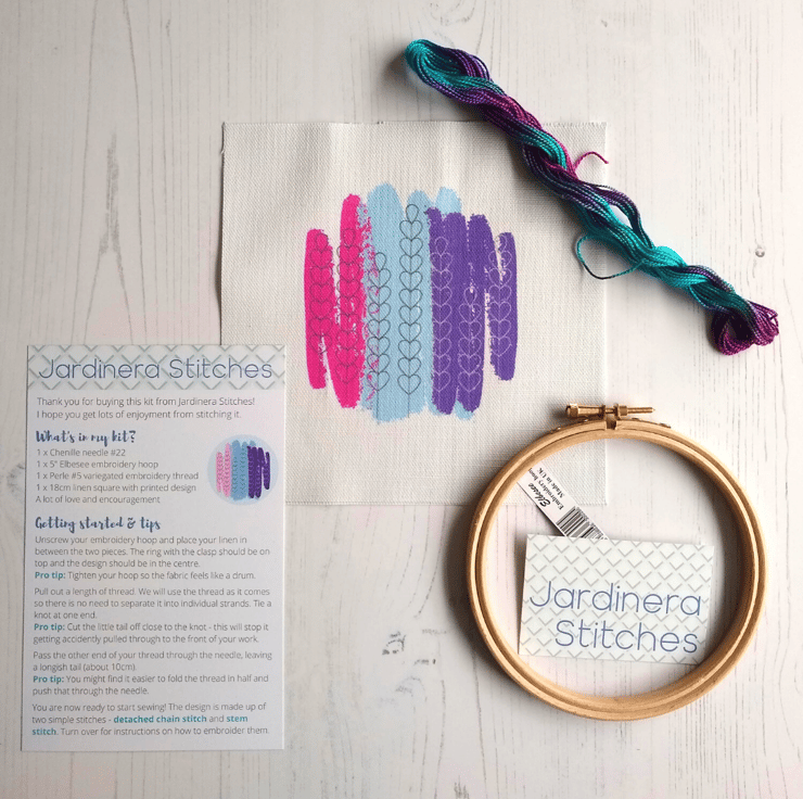 This easy-to-sew embroidery kit uses two simple stitches - stem stitch and detached chain stitch. Easy to learn if you're a beginner and fun and effective if you're a pro embroiderer.
