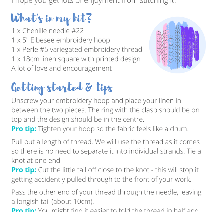 - Full printed instructions and guide to stitches