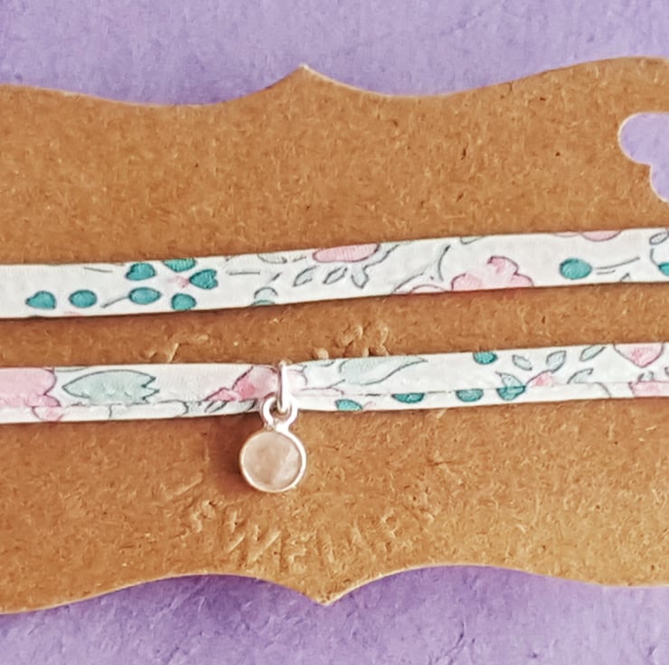 This light summery floral fabric wrap bracelet is ideal for both adults and little ones alike.