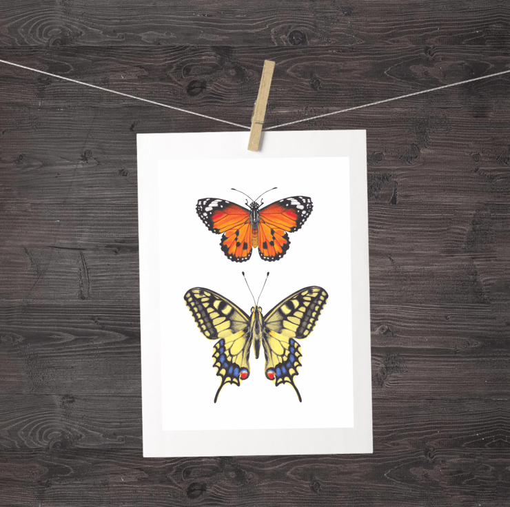 This print features a Swallowtail butterfly with a Tiger butterfly.