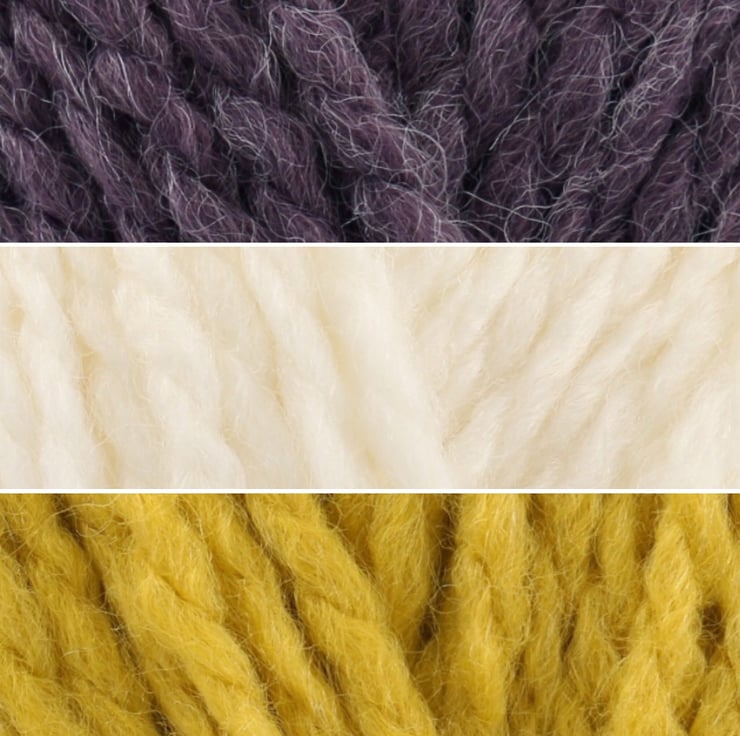 Included in the kit is 3 x 100 gram balls of Stylecraft Chunky softie yarn which is 80% acrylic and 20% wool and 5 x 1" wooden buttons.