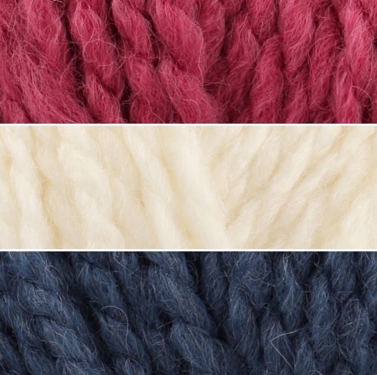 Colours of yarn is Zest, Fig and Cream or Raspberry, Indigo and Cream.