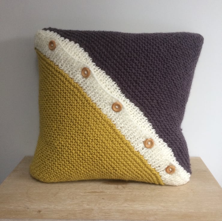 The back of the cushion features 2 contrasting triangles worked from the point outwards with a cream diagonal button band.