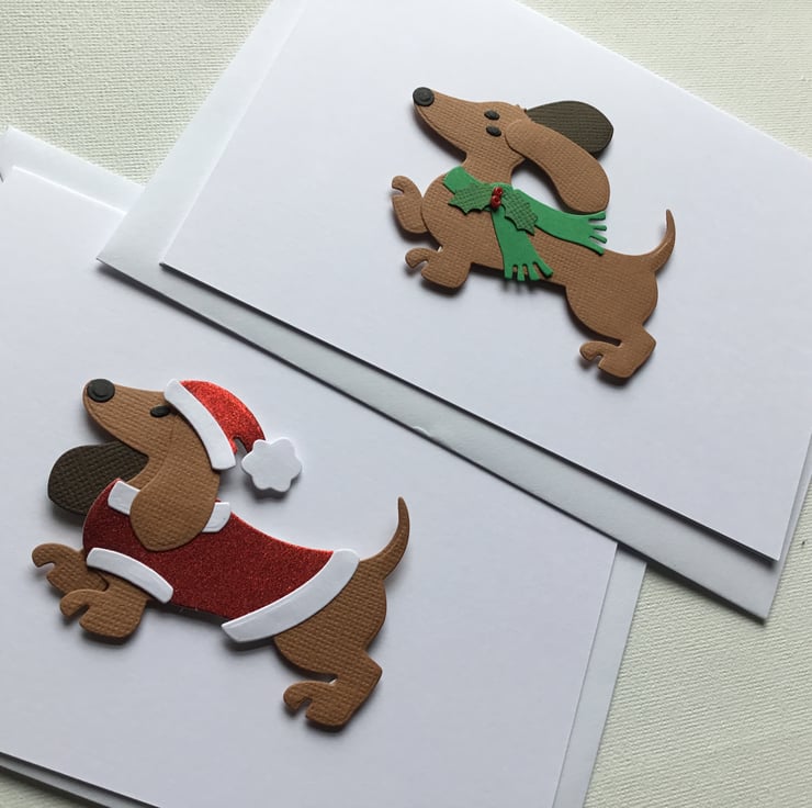 A pack of 2 cute dachshund Christmas cards.