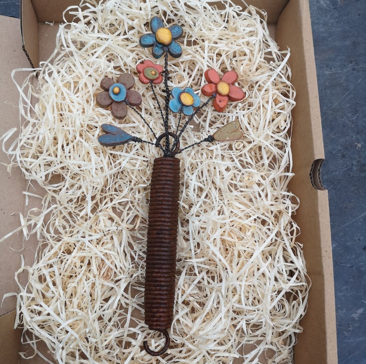 I found a box of rusty old springs on my husbands scrap pile here on the farm..im having great fun turning them into a floral wall hanging!