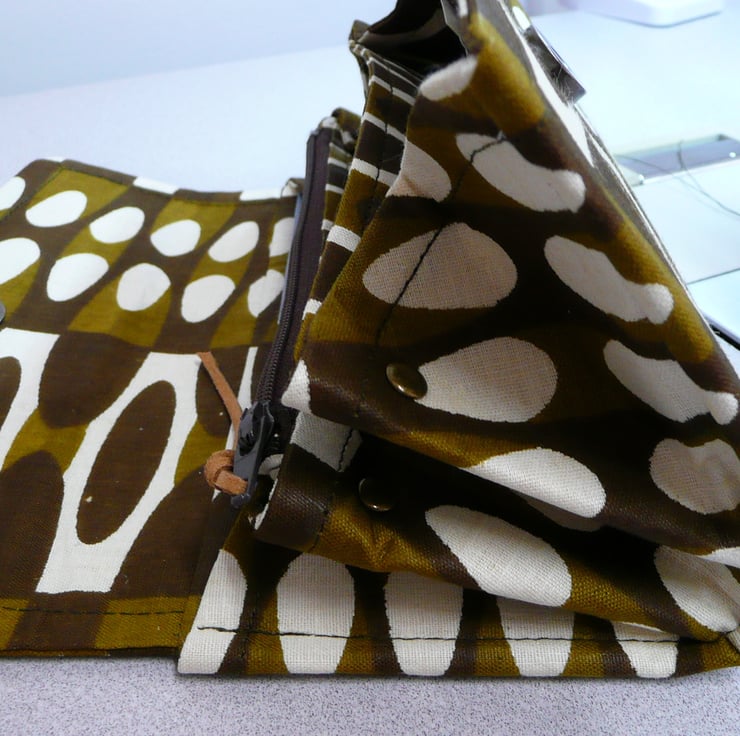 A unique one of a kind waxed cotton purse in shades of khaki and cream