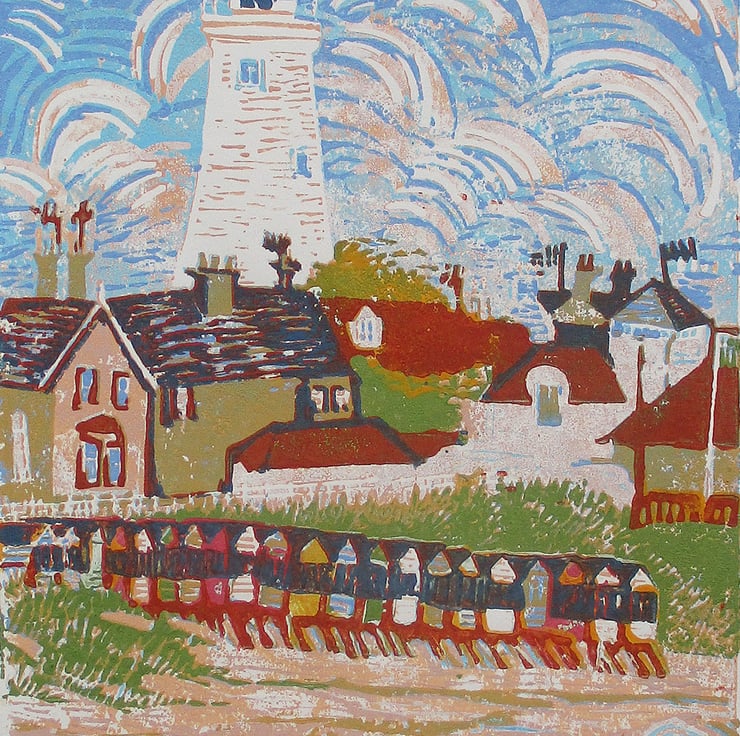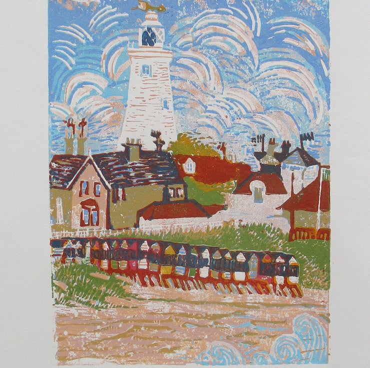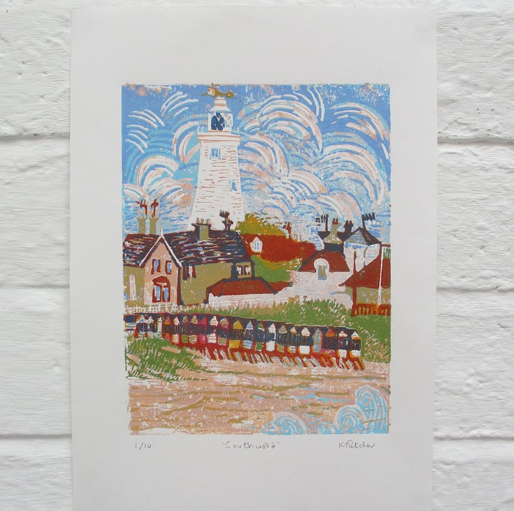 This is an original linocut print of the popular seaside town of Southwold, on the Suffolk Coast. It is based on photographs I took during a holiday in the area.