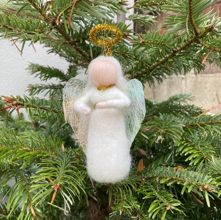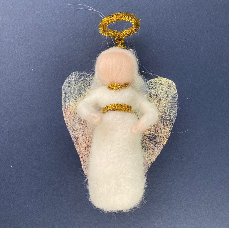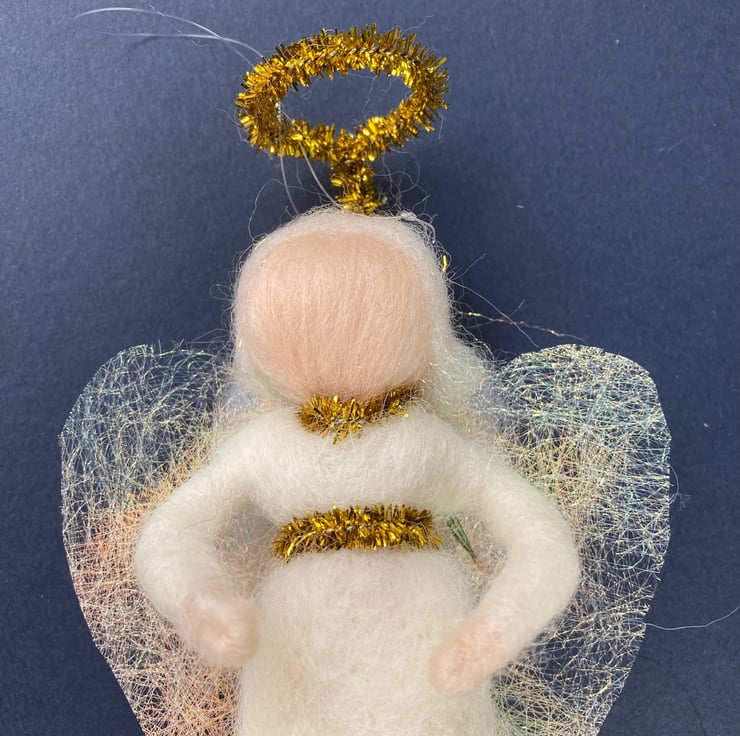 The angels have been needle felted using woollen fibres and a barbed felting needle.