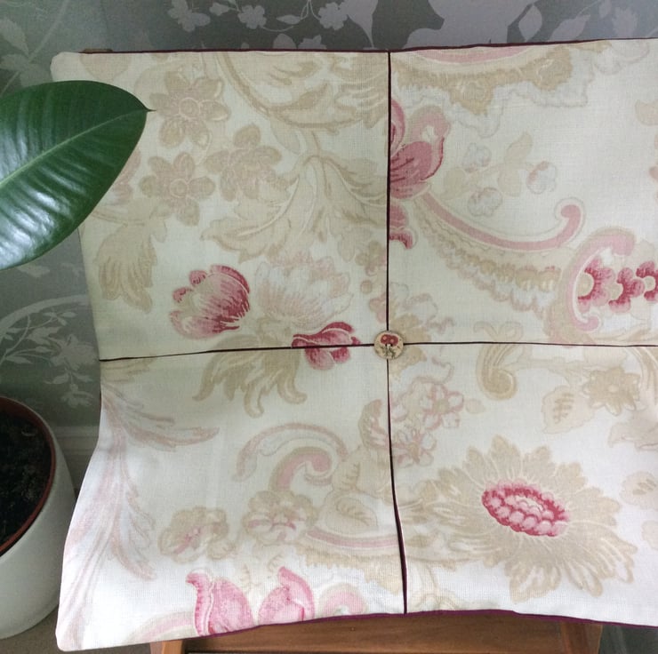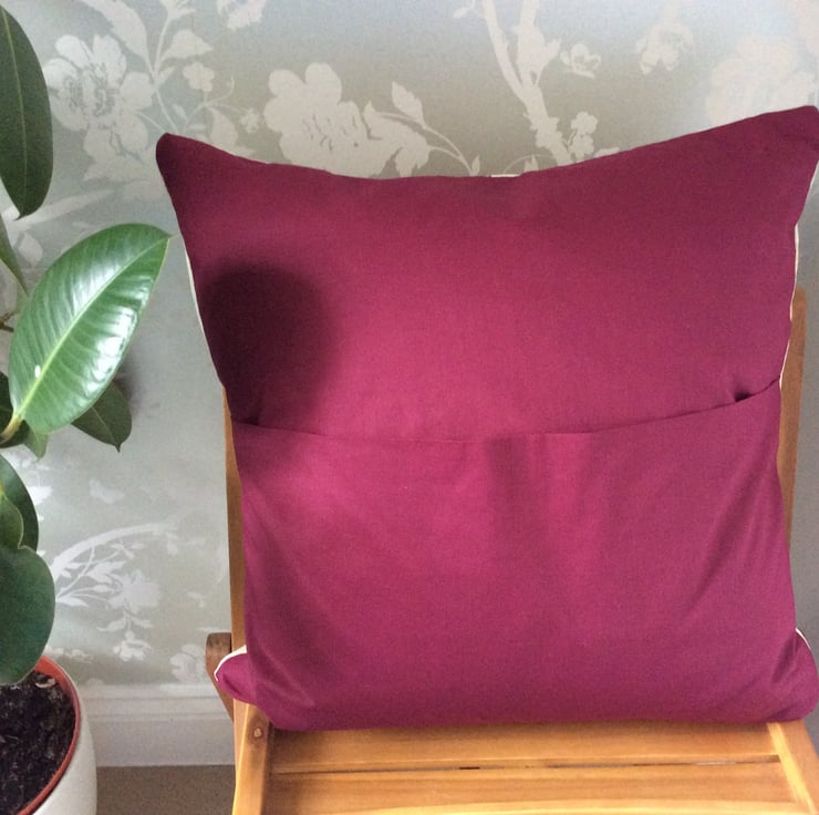 I’ve made this stunning pleated cushion cover in Baroque Raspberry Laura Ashley fabric backed in complementing quality Maroon colour way 100% Cotton.