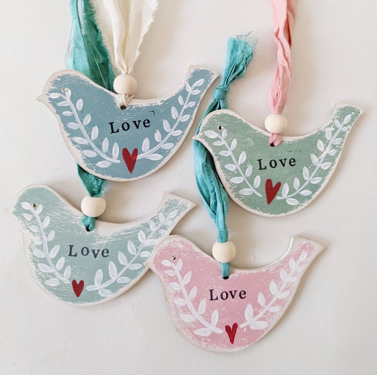These little birchwood birds are all individually hand painted, and stamped with words of positivity!