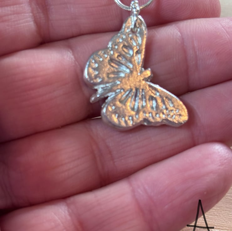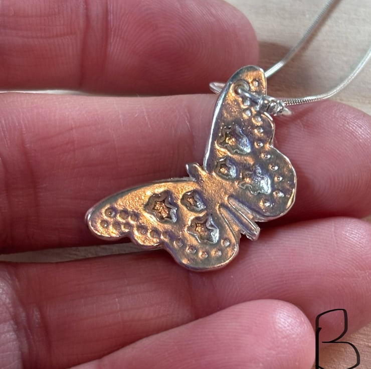 I have made this pendant totally by hand, it is of the ever popular butterfly, it hangs at a jaunty angle