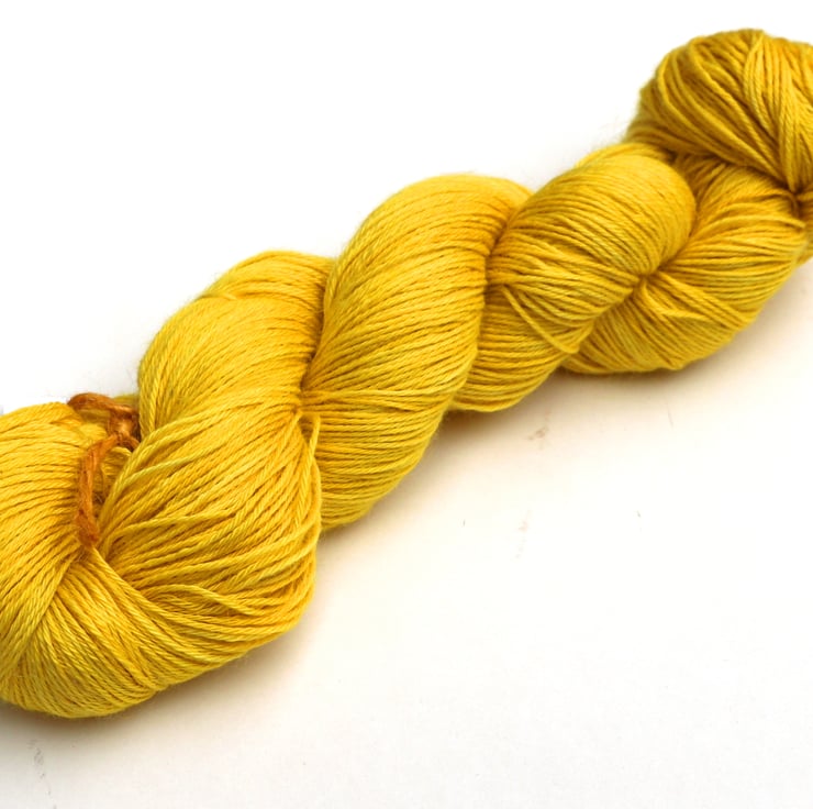 Exactly as its name says - fresh and bright lemon yellow, the colour of a lemon skin, and one of colours that's impossible to photograph accurately. This beautiful, luxurious yarn has the softness and warmth of alpaca with the smooth sheen and cool feel of silk. This is the 4-ply/sock weight equivalent of the my bestselling silky baby alpaca laceweight, and combines the softness and luxury of the baby alpaca/silk blend with the versatility of 'sock' yarn. Photographs have been taken and edited in bright natural light.