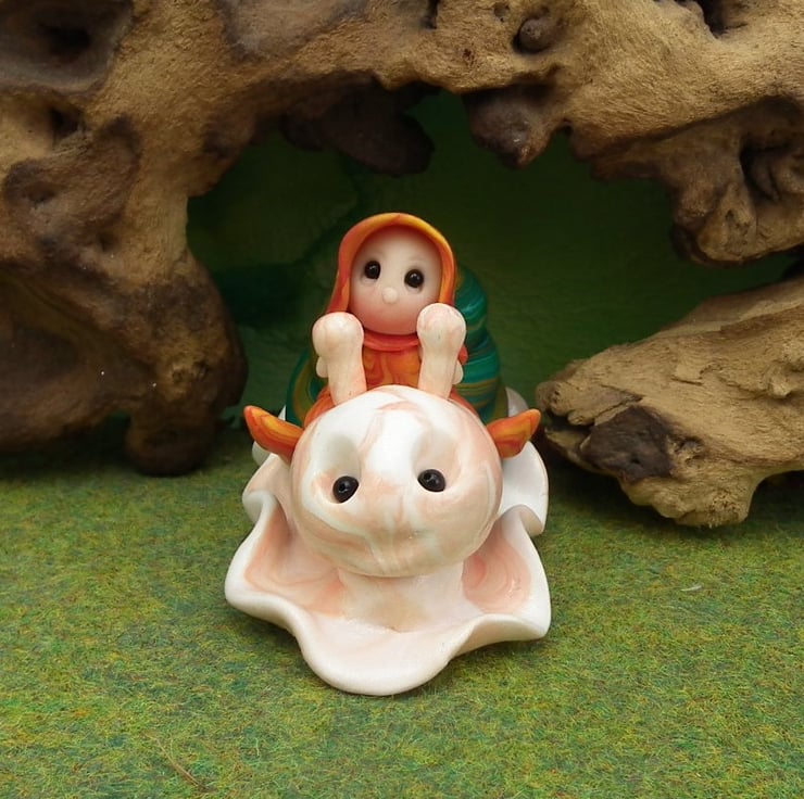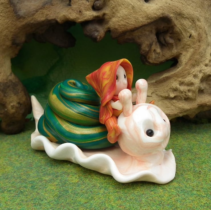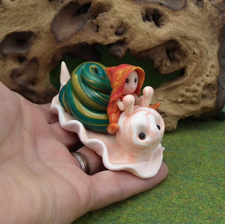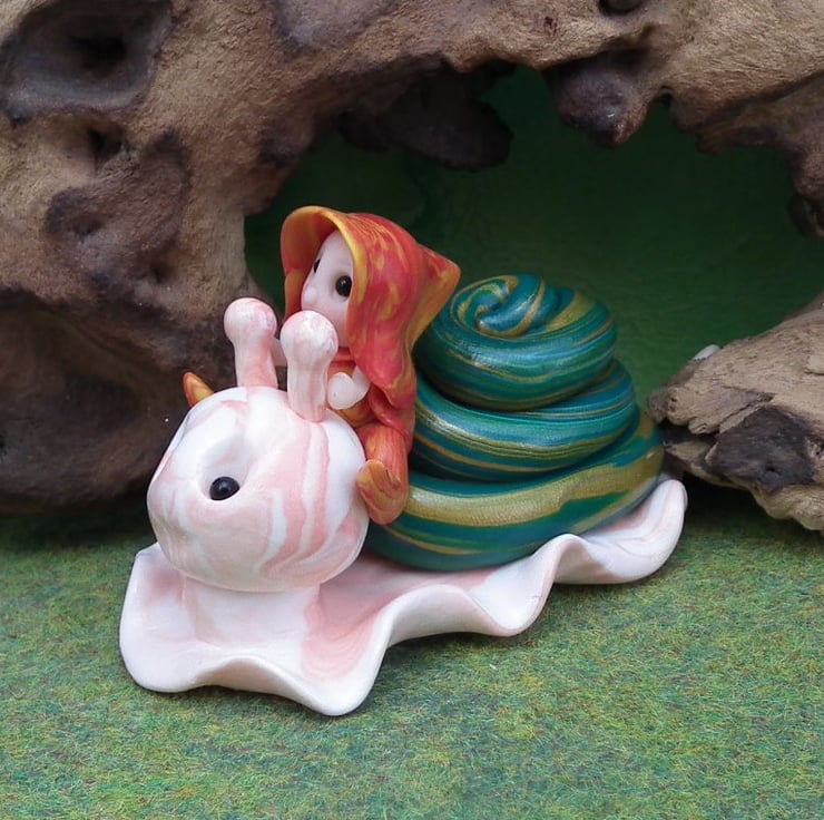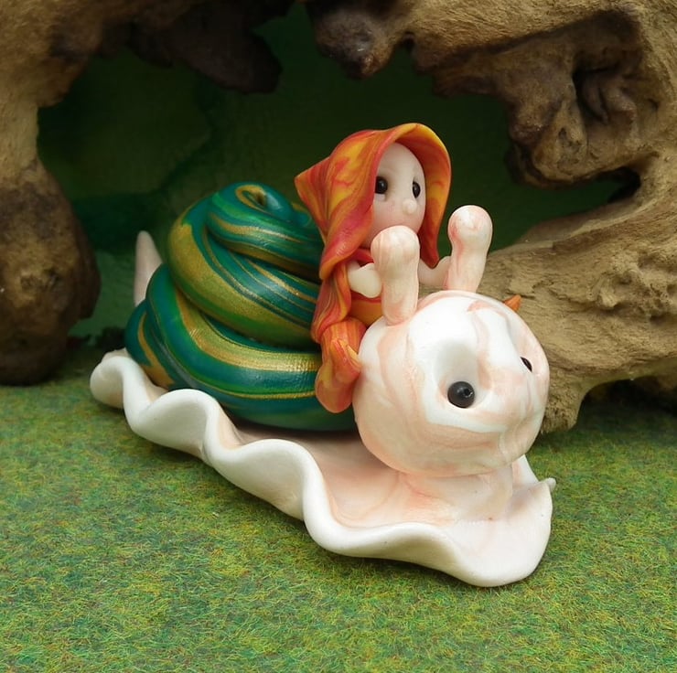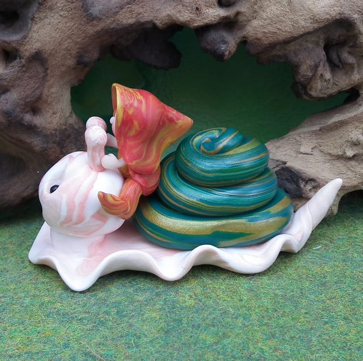 A 'one of a kind' creation having been entirely handmade without the use of moulds here at my studio on the Sussex Coast. Modelled with Prosculpt polymers, painted with heat set paints before sealing with lacquer. The snail is just over three inches long ...