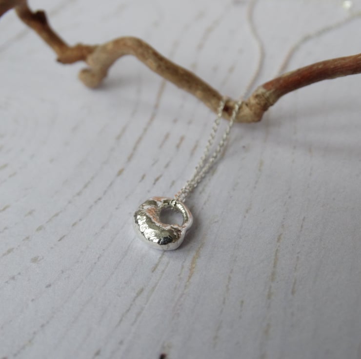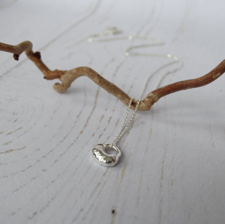 This tiny charm has been formed from off-cuts of Eco Silver - nothing in my workshop goes to waste! The silver is heated until it starts to take shape. Each pendant comes out differently, so no two are ever the same (you will receive the one pictured).