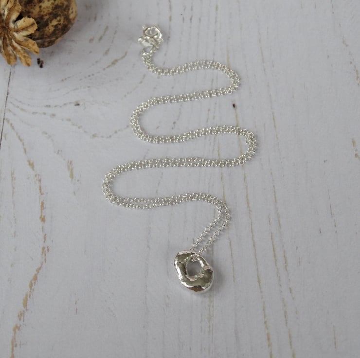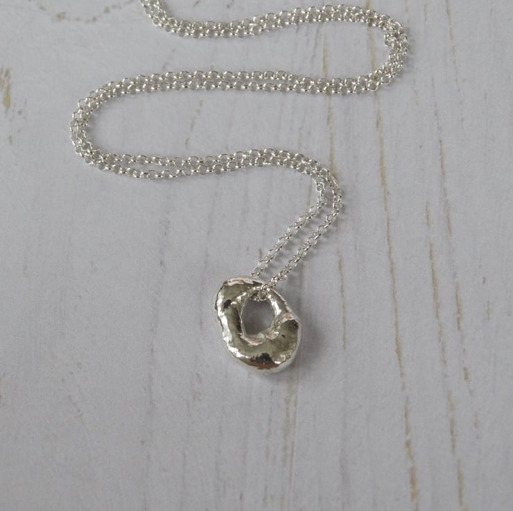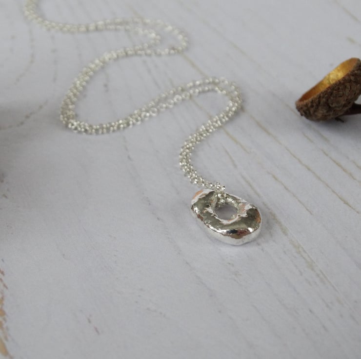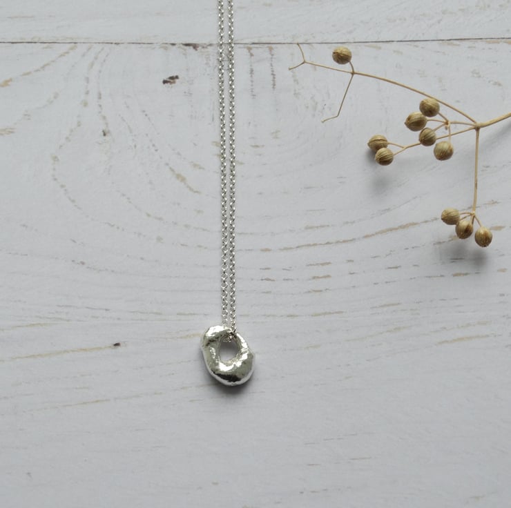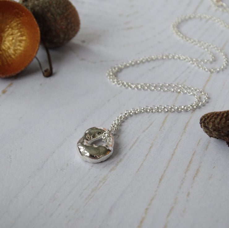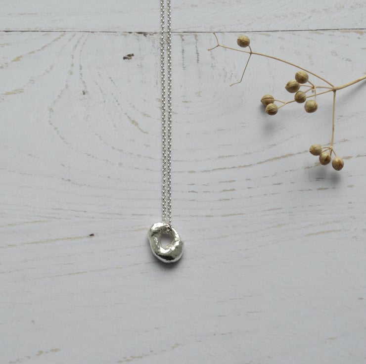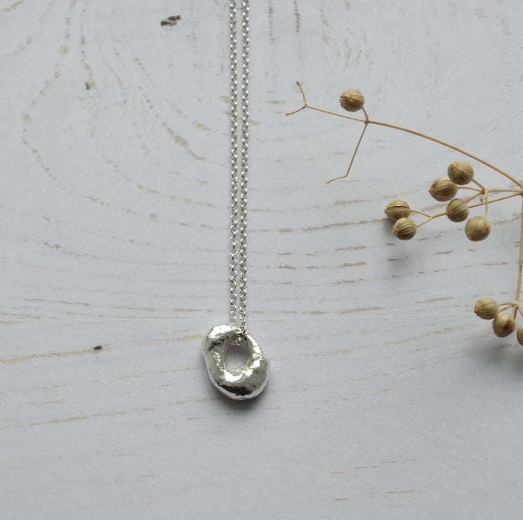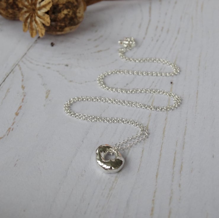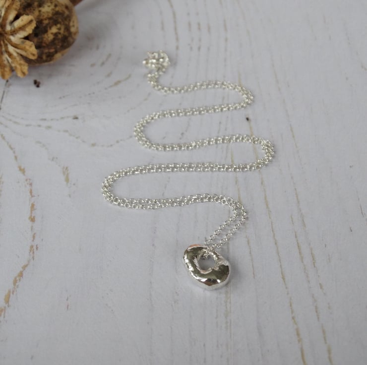 This sweet little charm has been formed from off-cuts of Eco Silver - nothing in my workshop goes to waste! The silver is heated until it starts to take shape. Each pendant comes out differently, so no two are ever the same (you will receive the one pictured).