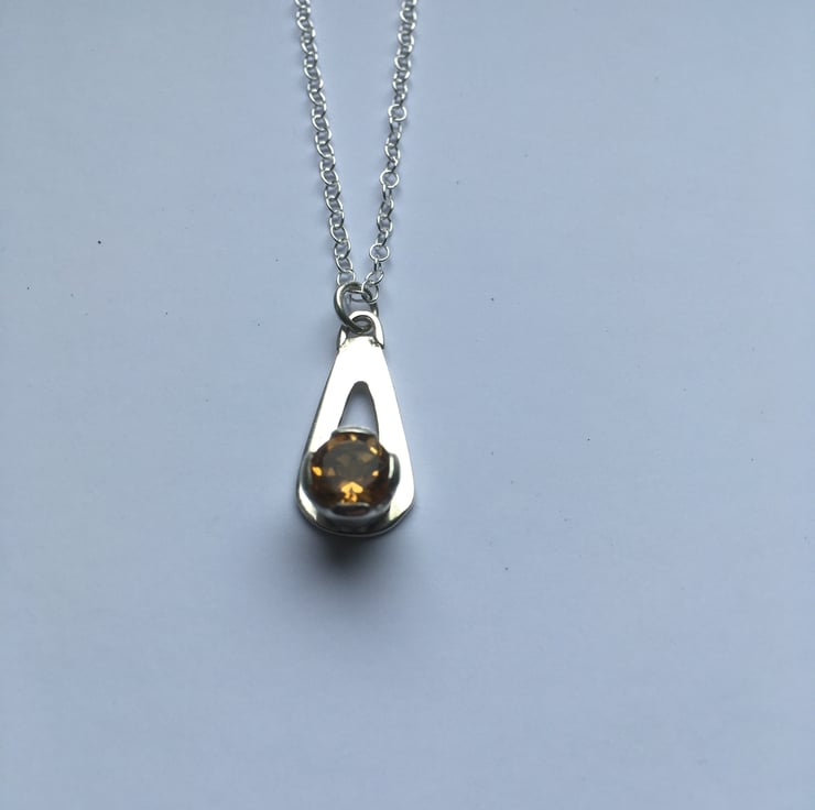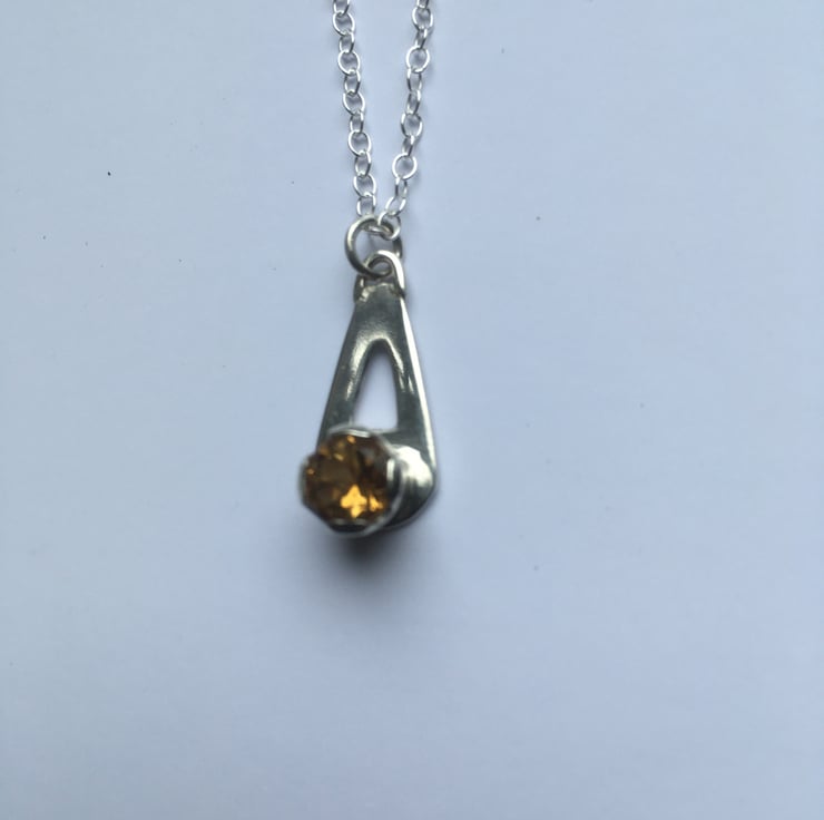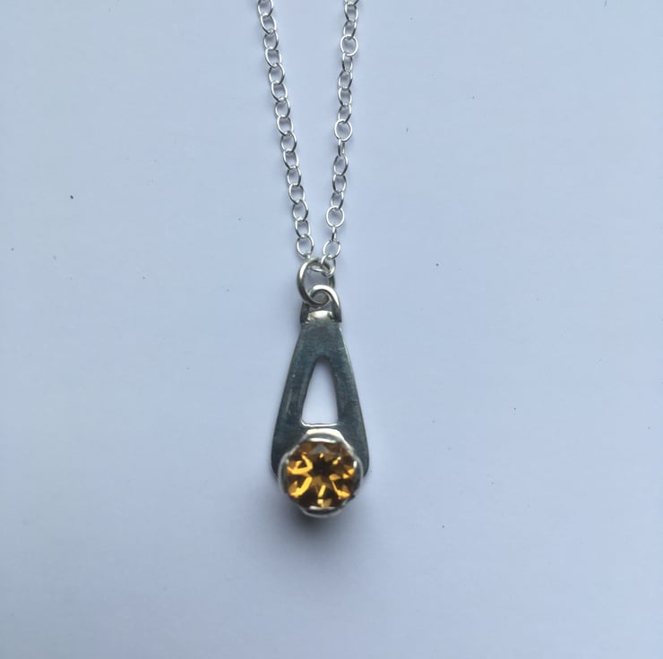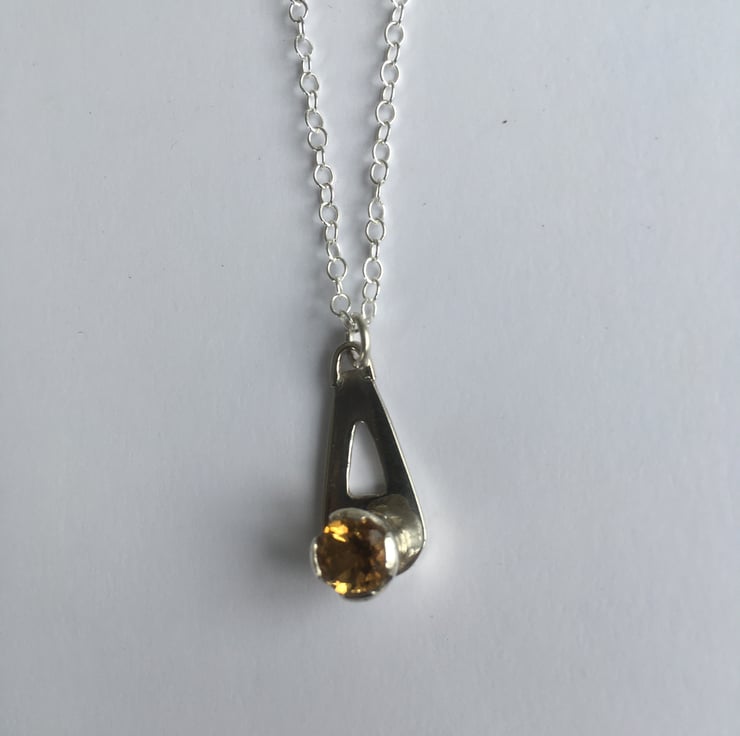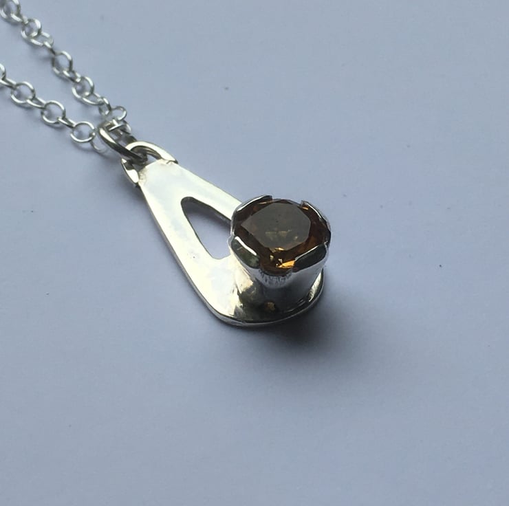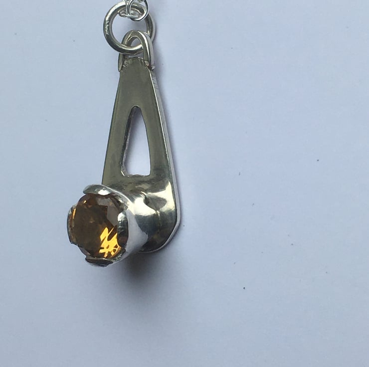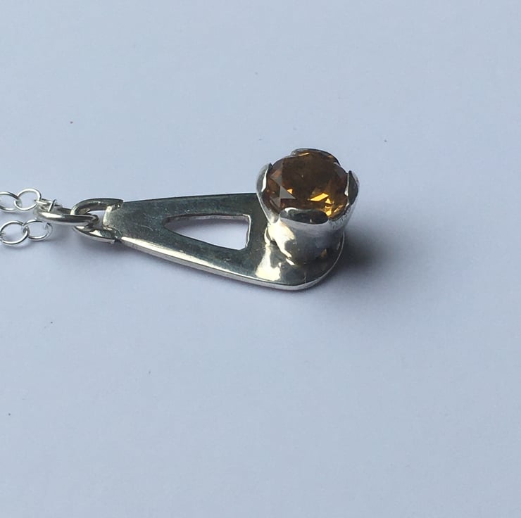 6.5 (approx) deep gold faceted Madeira Citrine. This pendant has been pierced out and formed from Sterling silver sheet and has been made entirely by hand.
