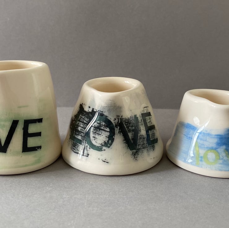 This trio of love will be posted ASAP and by 1st class delivery. If you are buying a whole heap of my pots, firstly, I salute you and secondly, I promise to refund any excessive postage cost. I will carefully squeeze in as many pots as possible and always keep postage costs as low as I can. Feel free to mail me before purchasing if you have any concerns.
