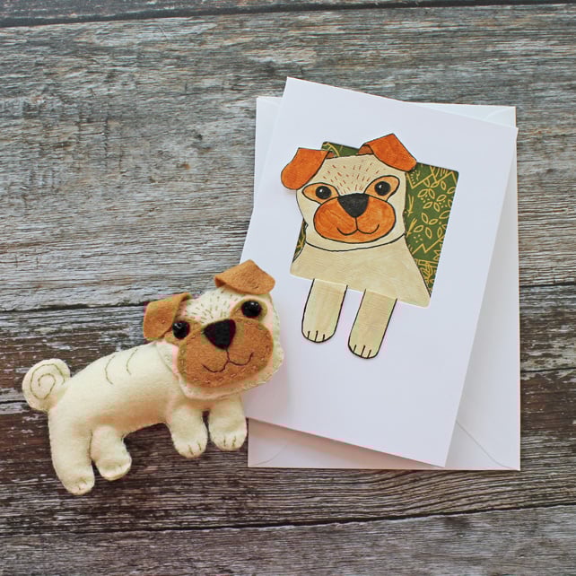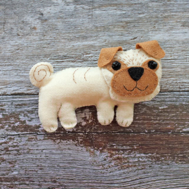 This little felt pug is from a pattern by Alison Reid 'Stitch 50 dogs'. He's made using felt and embroidery thread and is slightly padded. I've used small beads for his eyes so he is not suitable for very young children.