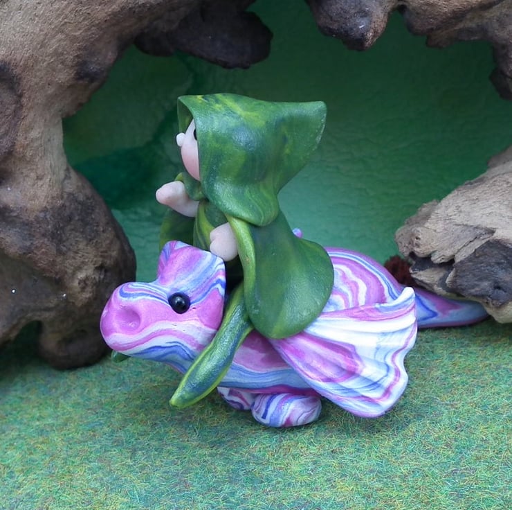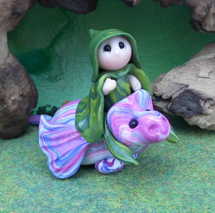 A 'one of a kind' creation having been entirely handmade without the use of moulds here at my studio on the Sussex Coast. Modelled with Prosculpt polymers, painted with heat set paints before sealing with lacquer. The Dragon is just three inches long ...