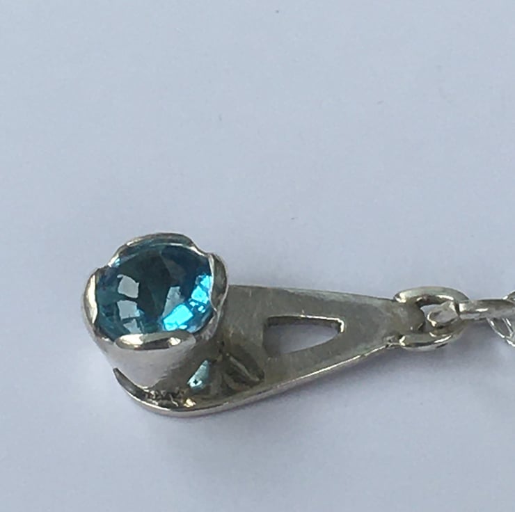 This stunning, easy to wear pendant has been Coronet set with a colourful 6 mm (approx)Buff Top Swiss Blue Topaz - this means that the back of the stone is faceted giving the stone sparkle and depth .