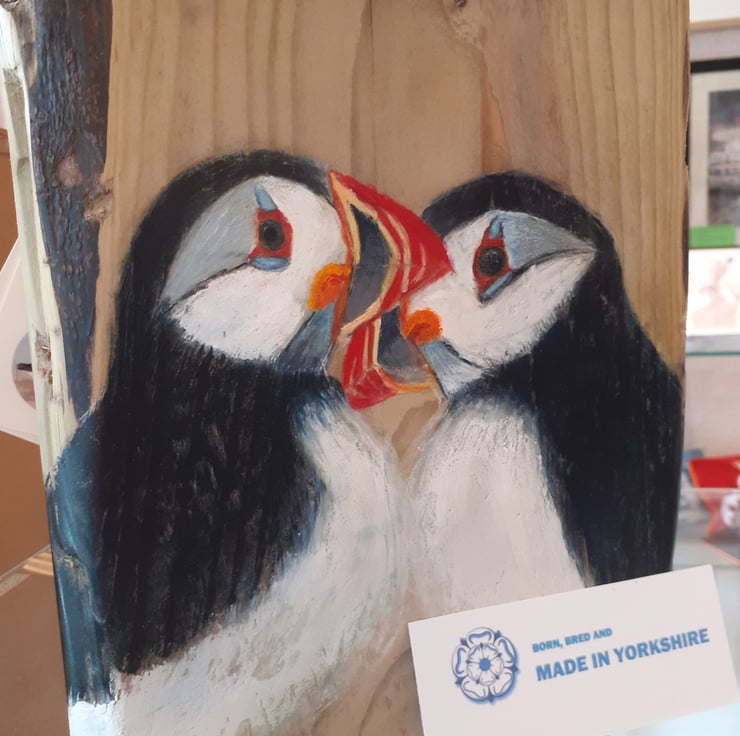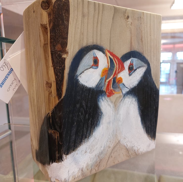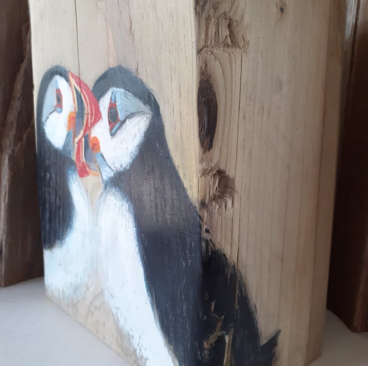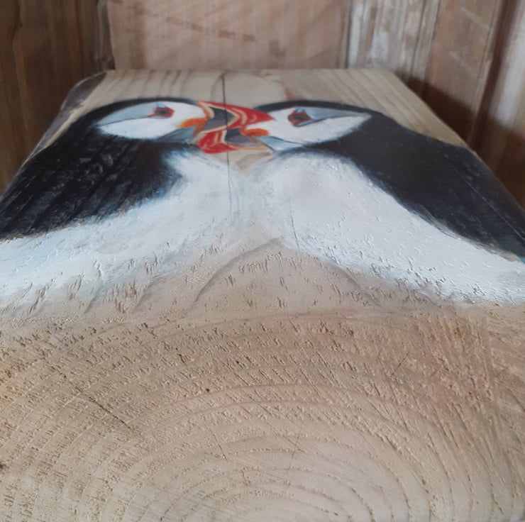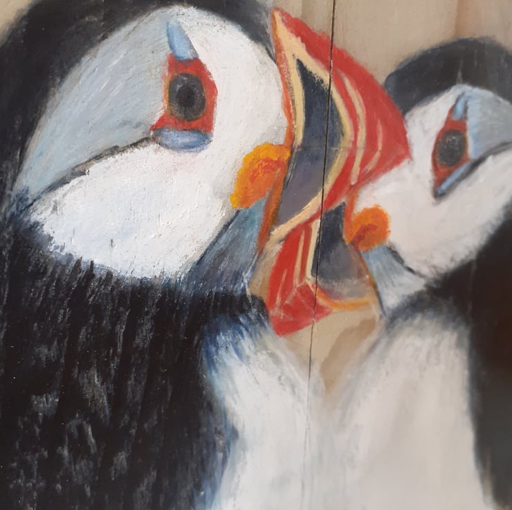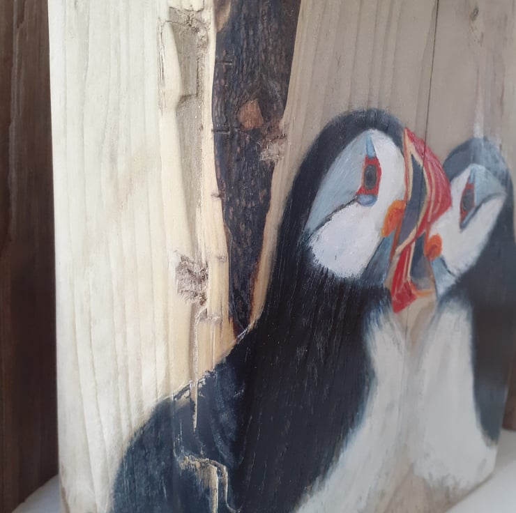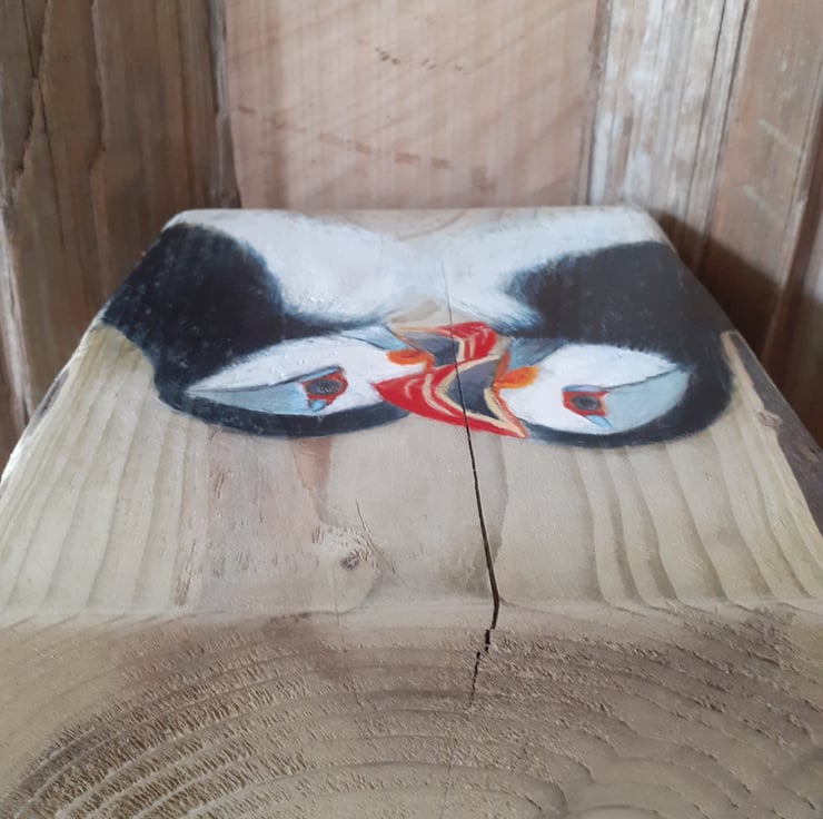 Puffin Love on Wood