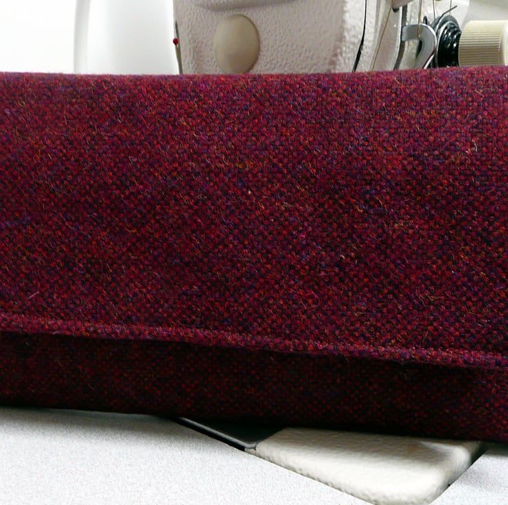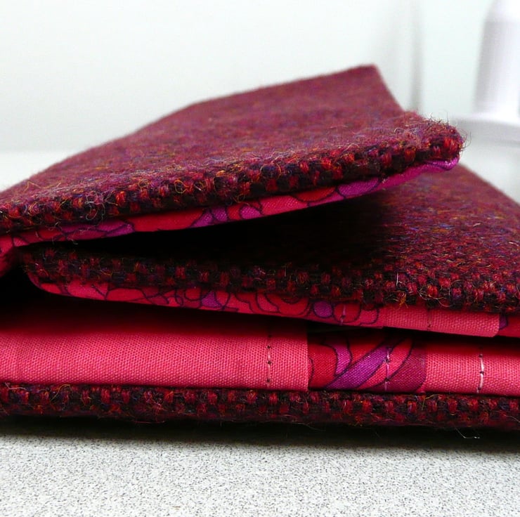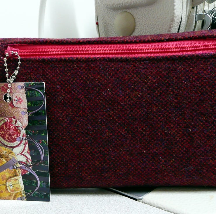 Maroon and hot pink wool tweed bi fold wallet, ladies purse