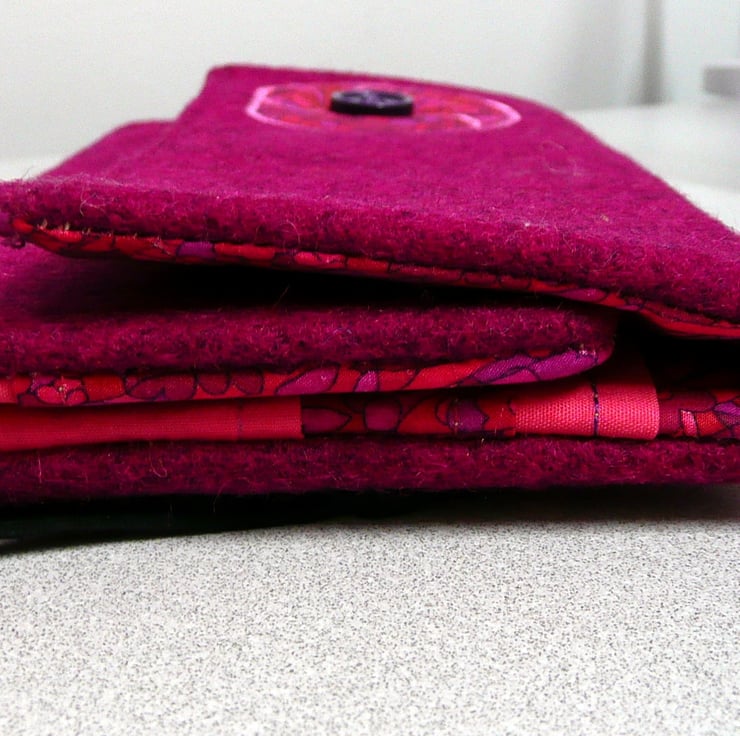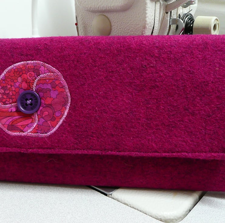 Pink bi fold wallet, ladies purse tweed bi fold wallet with applique detail