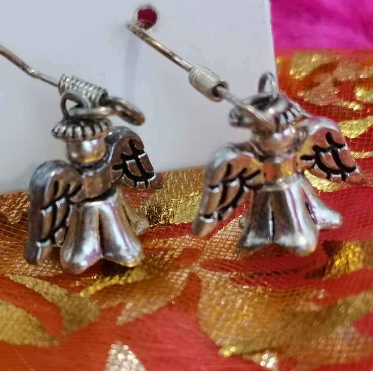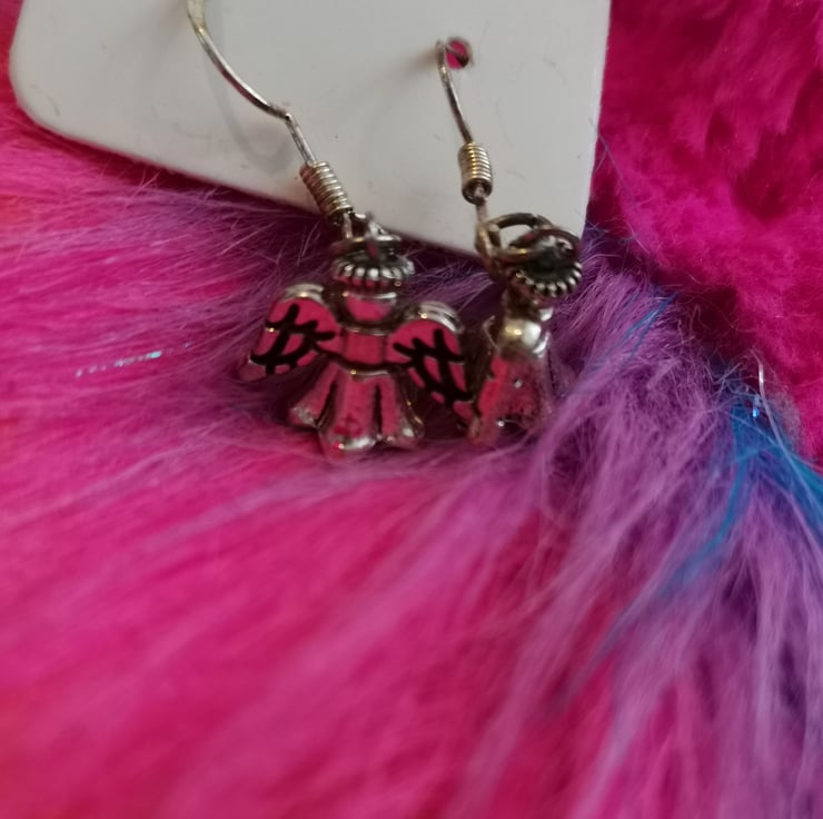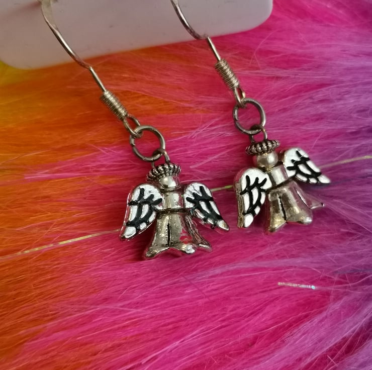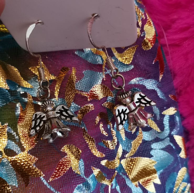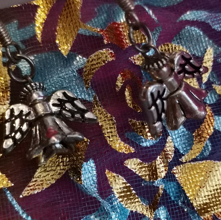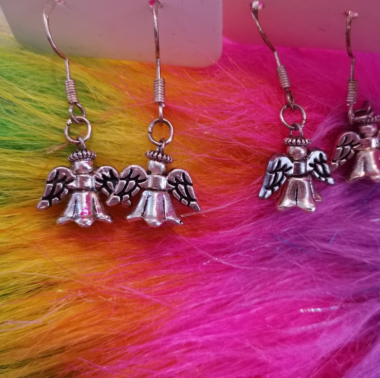 I made these earrings with a metal tulip, a pair of angel wings, a small silver bead and a tiny beaded hoop as a halo, i glued them together with resin so they will last a very long time