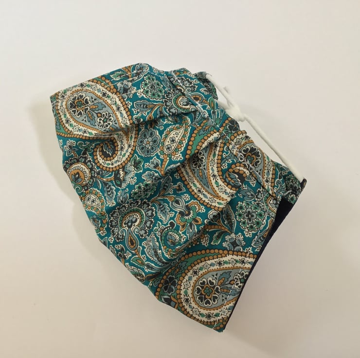 Liberty paisley design with nose wire and adjustable ear loops. NOW HALF PRICE