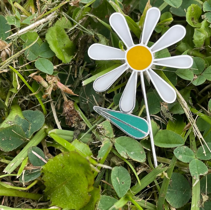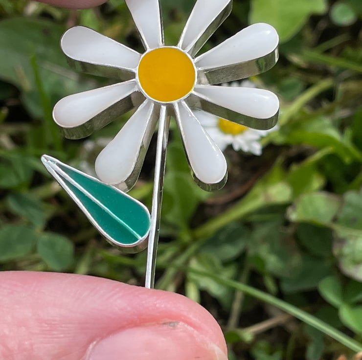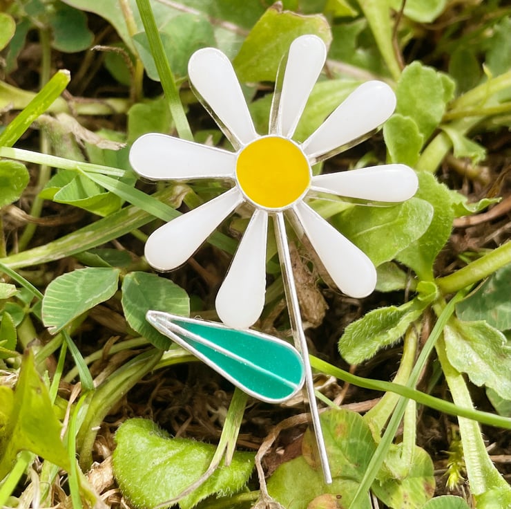 This delicate daisy brooch is handmade by me using sterling silver and coloured resin.