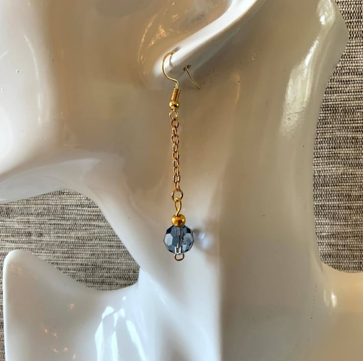 This earring can be worn in just one ear and its partner which is shorter in length featuring bead only in the other ear.
