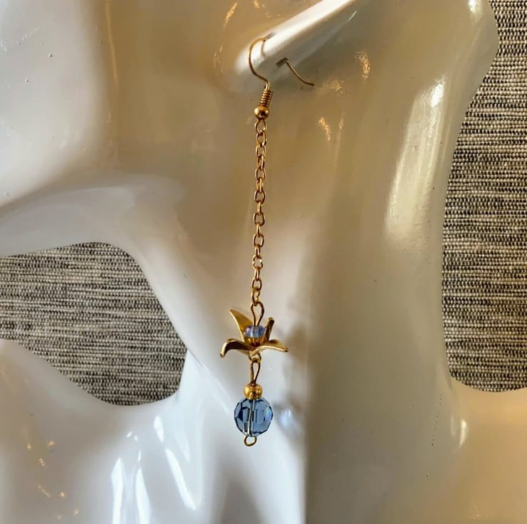Origami crane bird statement earring.