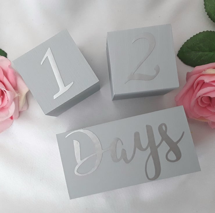 Number Blocks - 2" (5cm) each side, Handpainted, with vinyl lettering