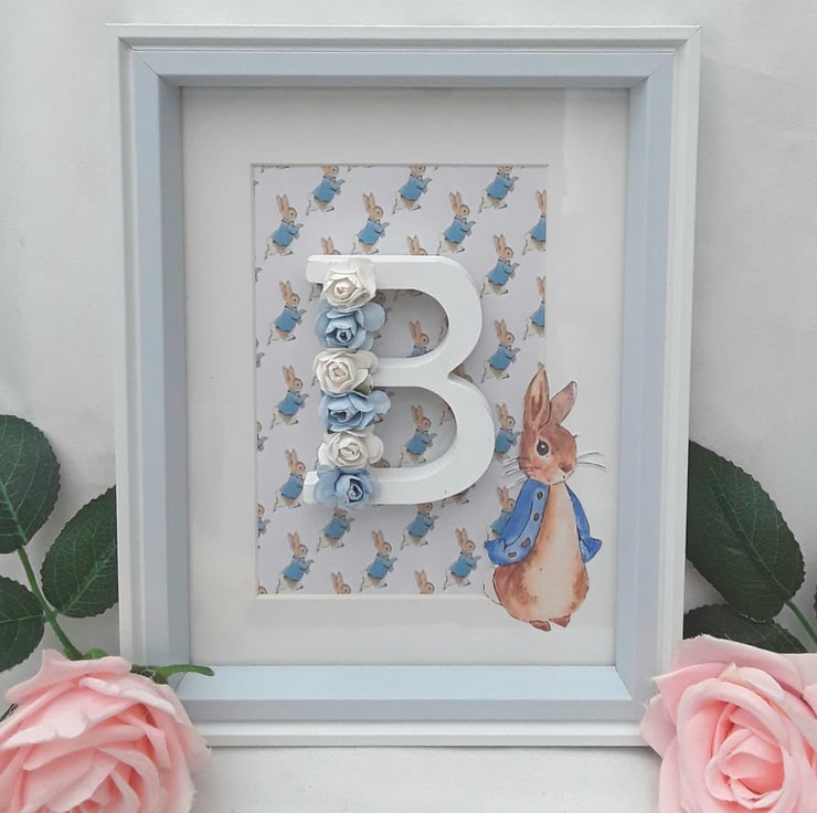 23cm x 16cm Peter Rabbit Frame, New baby Initial frame,Baby girl frame,Baby boy frame,Nursery decor,Baby keepsake frame,New baby gift