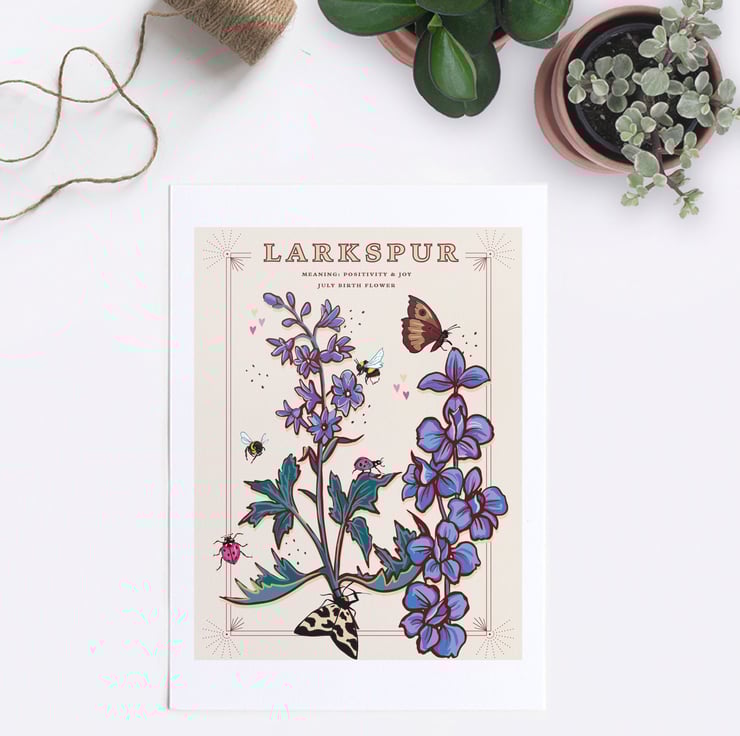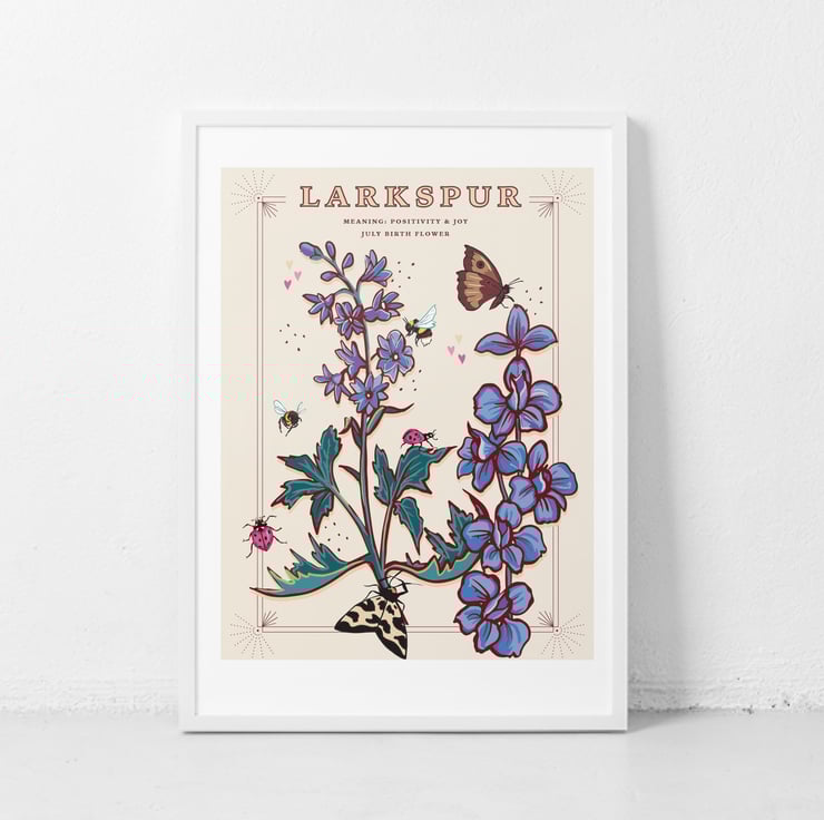 A vintage seed packet style illustration. This print is part of my 'Language of Flowers' collection and features the following words in the design: